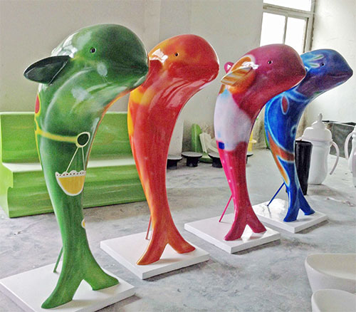 玻璃钢海豚动物组合雕塑是一种成品类型,包括人物、动物、花草等多种表现形式。雕塑一般分为圆雕和浮雕两种类型,简单来 说,圆雕产品就是三维立体类雕塑(比如仿真人雕塑),而浮雕则为部分雕塑(如校园墙体雕塑)
